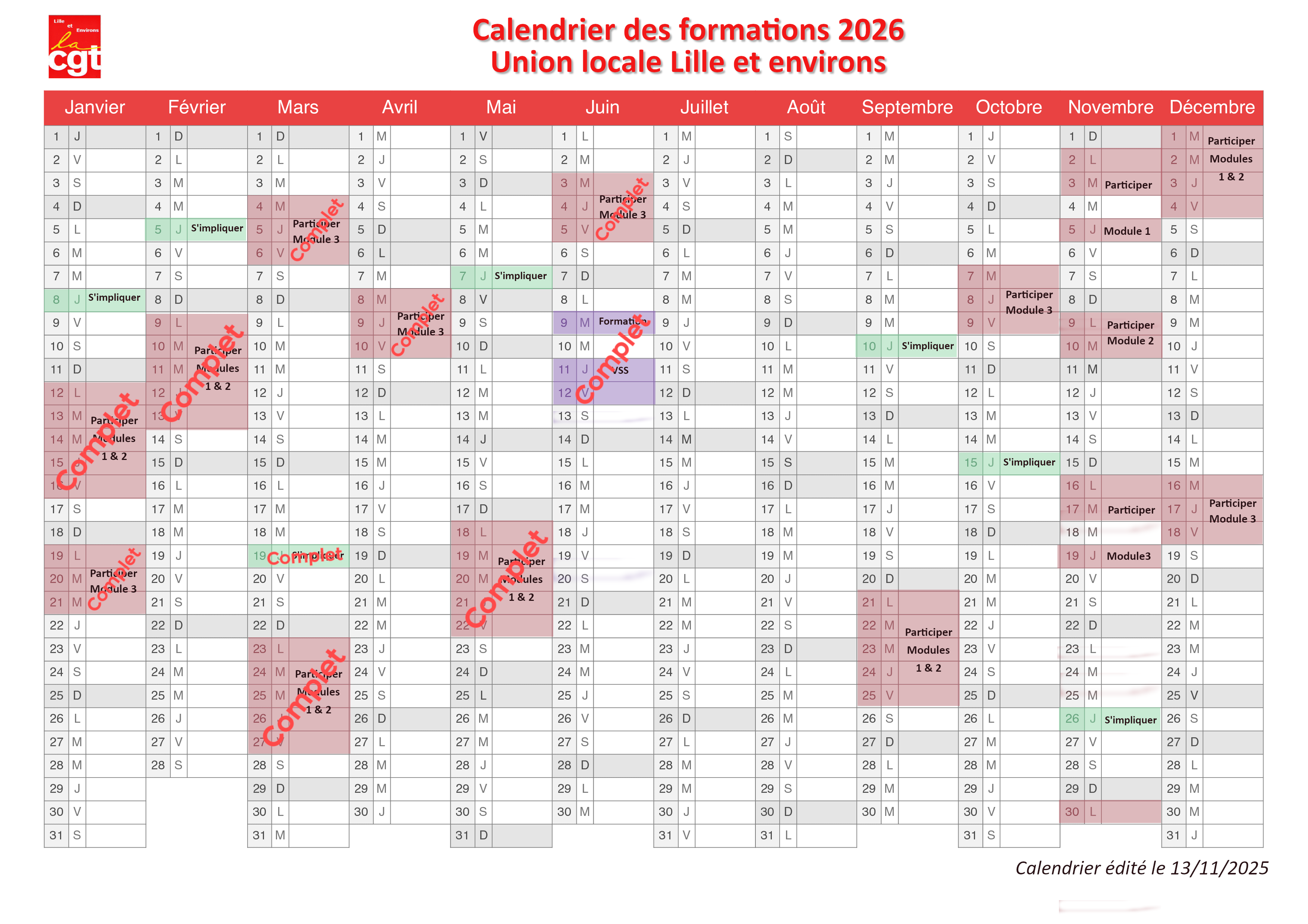 Cela dépend de la formation et de qui l’organise. Concernant les formations confédérales qui peuvent être organisées par notre union locale, la formation d’accueil « S’impliquer dans la CGT » se fait sur une journée tandis que le niveau 1 « Participer à la vie de la CGT » se déroule sur huit jours fractionnés en trois modules.